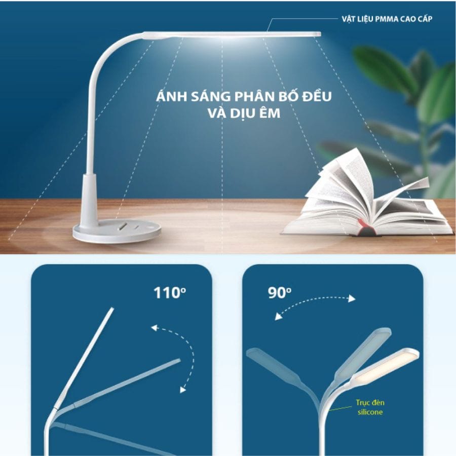 Đèn để bàn được làm từ nhựa cao cấp, bền bỉ. Đem đến giải pháp chiếu sáng dài lâu 20,000 giờ