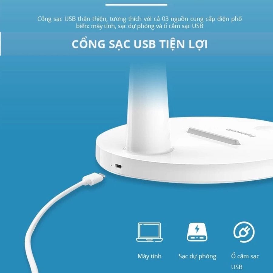 Đèn học Panasonic có thể sạc đầy đèn và sử dụng trong 3 -4 giờ liên tục mà không cần nguồn điện. Điều này giúp bạn có thể sử dụng đèn ở bất cứ đâu.Mang lại sự tiện dụng tuyệt vời cho các không gian học tập hay làm việc.